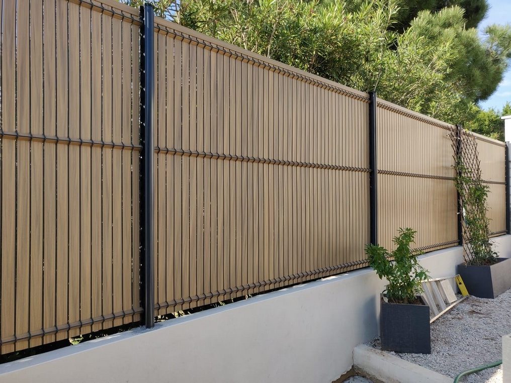 - Pour un jardin familial, couplez des poteaux acier (solidité) à des lames PVC ou composite (intimité).